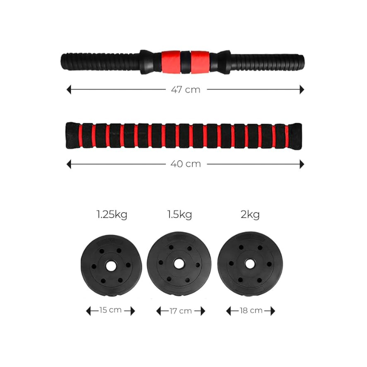 Diseñado para ti, este kit ajustable no solo es fácil de usar, sino que también se adapta a cada etapa de tu progreso físico. Con una barra extensible, transforma tus mancuernas en una barra de pesas en segundos para poder usarse para ejercicios como sentadilla o remo. Cada detalle, desde el material antideslizante hasta los discos termo-forrados, está pensado para brindarte seguridad, comodidad y resultados.